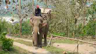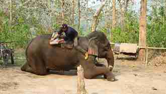 Ce récit relate une balade au Laos à dos d’éléphant, le long des berges du Mékong.