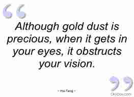 2. Bien que la poussière d'or soit précieuse, quand vous l'avez dans les yeux, elle vous empêche de bien voir.