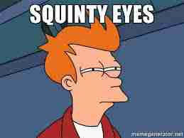 | To glimpse= jeter un coup d'œil (rapide) | To squint= regarder du coin de l'œil / loucher |