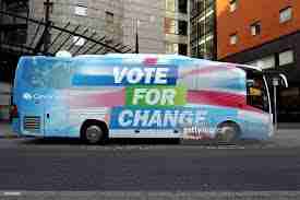 | A poster= Une affiche | A flyer/flier= un tract | An electoral meeting = une réunion électorale  | An electoral coach to go on a tour = autocar pour une tournée électorale  |