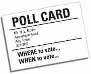 A poll card = une carte électorale  | A vote mark = une marque presque indélébile  | A ballot box = une urne  | A transparent ballot box = une urne transparente.  |
