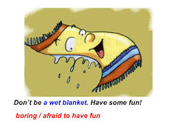 To cost an arm and a leg = Coûter "un bras" ... | To be a stepping stone = être un "tremplin". | To be a wet blanket |