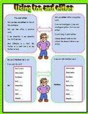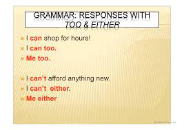 Exercice d'anglais "Too ou Either - cours d'anglais" créé par here4u avec le générateur de tests - créez votre propre test ! [Plus de cours et d'exercices de here4u]
