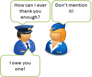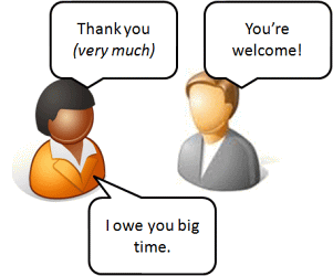 -Merci beaucoup | -Merci beaucoup -Je vous en prie! -Je vous dois une fière chandelle. | -Merci pour tout -Tout le plaisir est pour moi! -Comment pourrais-je vous remercier un jour? |