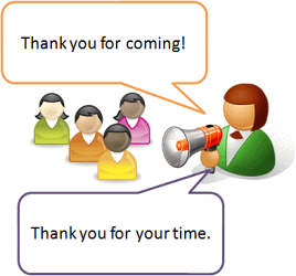 | -Comment vous remercier? -Il n'y a pas de quoi! -Je vous revaudrai ça! | Merci pour votre attention. | -Merci d'être venu. -Merci d'avoir pris le temps (de...) |