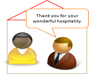 | -Merci pour votre gentille invitation. | -Merci de m'avoir reçu chez vous. | -Merci de m'avoir si bien reçu. |